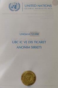 UBC İç ve Dış Ticaret Anonim Şirketi is proudly registered with the United Nations Global Marketplace (UNGM) under the registration number 725390.